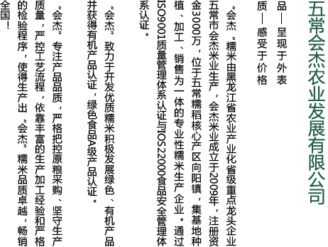 五常糯米受產(chǎn)區(qū)獨(dú)特地理及氣候因素影響,干物質(zhì)積累多因其支鏈淀粉含量高,粘度較高、外表如珍珠般亮澤。蒸煮后軟糯香甜,柔而不硬,冷卻后不回生!